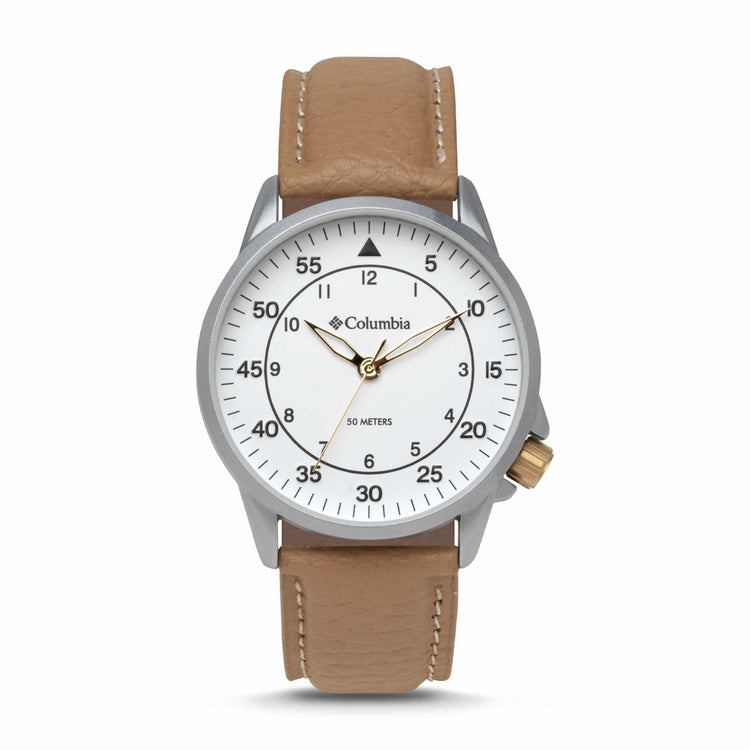 Columbia Watch Viewmont Steel Colour White Dial Camel Leather Strap