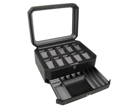 Wolf Heritage Windsor 10 Piece Watch Box with Drawer Black/Grey 4586029